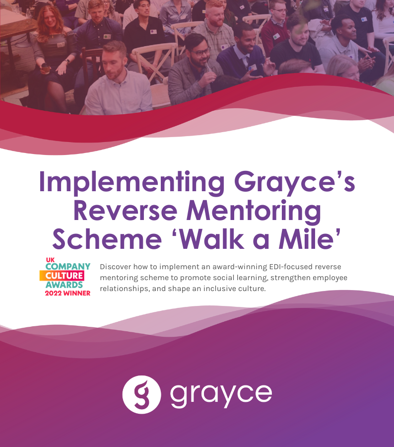 At Grayce, our reverse mentoring scheme is a key part of our equality, diversity and inclusion strategy. ‘Walk a Mile’ connects Grayce Analysts with members of the Grayce Leadership & Board Teams for junior colleagues to share their EDI knowledge.